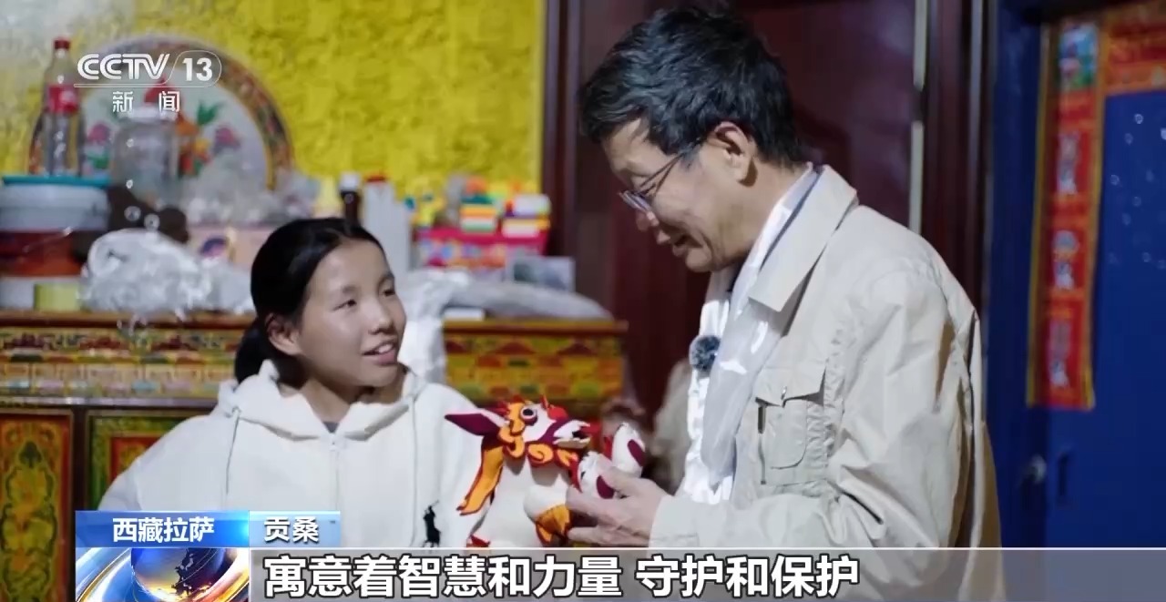 贡桑:给爷爷一个礼物,这个名字叫做小狮子,寓意着智慧和力量、守护和保护。我妈妈亲手做的,希望刘爷爷身体健康。